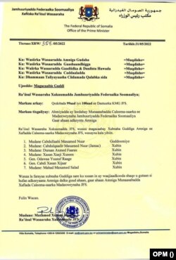 Sida lagu sheegay bayaan kasoo baxay xafiiska Ra'isul Wasaaraha, wasiirka Amniga Qaranka Cabdullahi Maxamed Nuur ayaa noqonaya guddoomiya guddigan, waxaana xubno ka ah, wasiirka Gaashaandhigga Cabdulqaadir Maxamed Nuur (Jamac) Wasiirka duulista Durraan Faarax, wasiirka caddaaladda Xasan Xaaji Xuseen, taliyaha ciidanka xoogga dalka General Odowaa Yususf Raage, taliyaha booliska General Cabdi Xasan Xijaar iyo agaasimaha hay'adda Nabad Sugidda iyo Sirdoonka ee NISA Mahad Salaad.